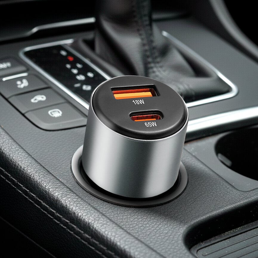 Compact dimensions (27 x 72 mm) and low weight (47 g) make the charger fit perfectly in the cigarette lighter socket. With its stylish, modern design and high-quality housing materials, it not only works reliably, but also looks great in the car.