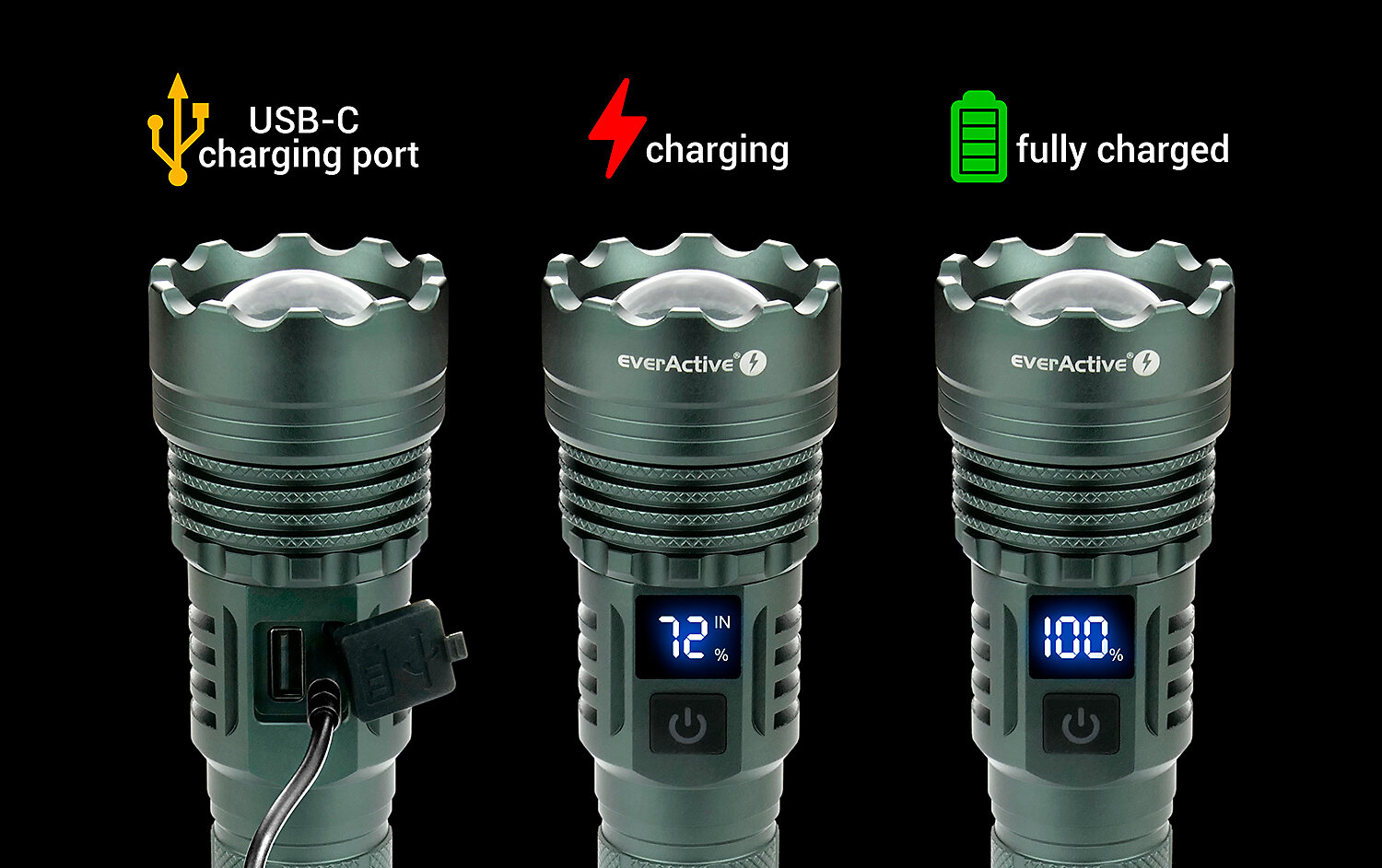 Thanks to the use of a USB-C port, charging is quick and convenient - the same cable you use for your phone will also work well when charging the flashlight. This is the end of problems with additional cables.