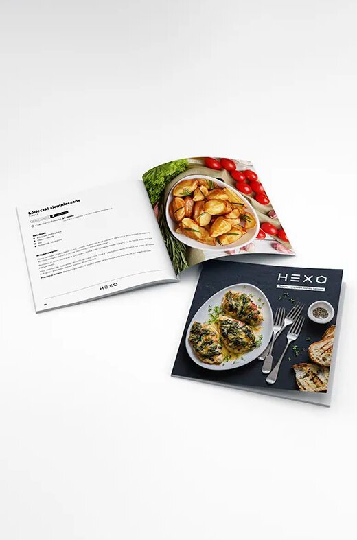 The set also includes a recipe book, thanks to which you will learn how to prepare dishes such as broccoli tart, chicken wings, vegetable patties, carrot muffins and many more in the HEXO cook XL air cooker.