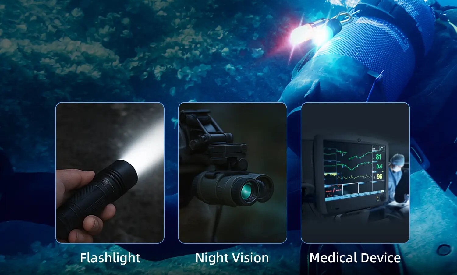 Rechargeable batteries are ideal for smaller flashlights, night vision or medical devices