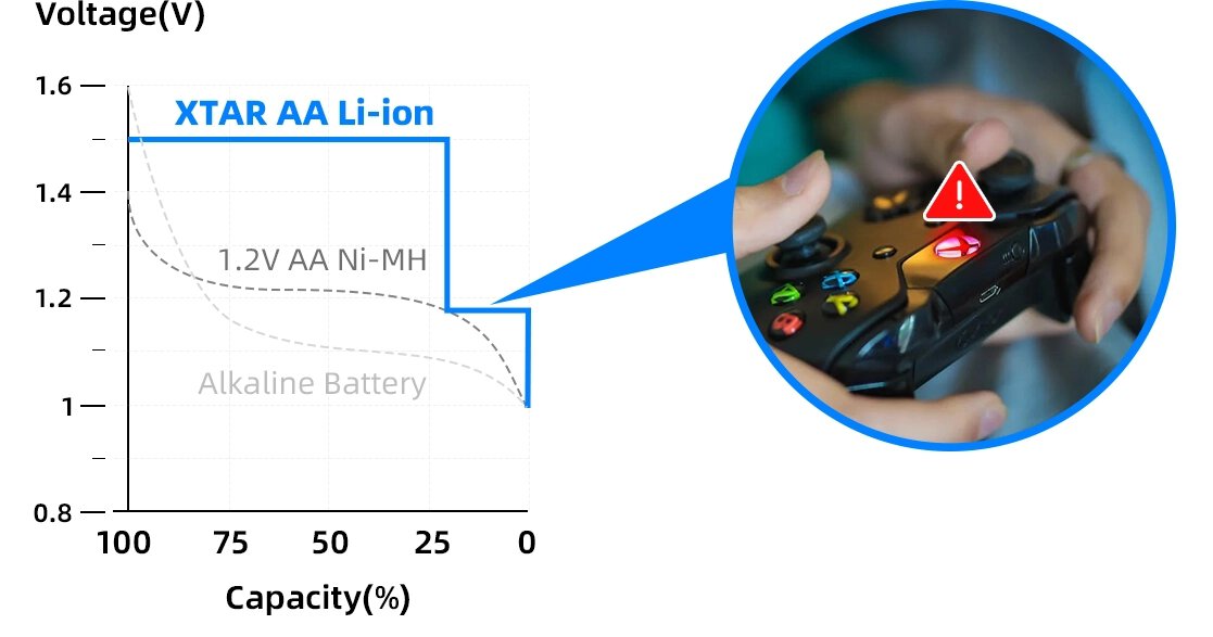 The built-in converter specifically lowers the voltage to 1.1V when the battery is close to discharge, so you can replace the batteries in time.