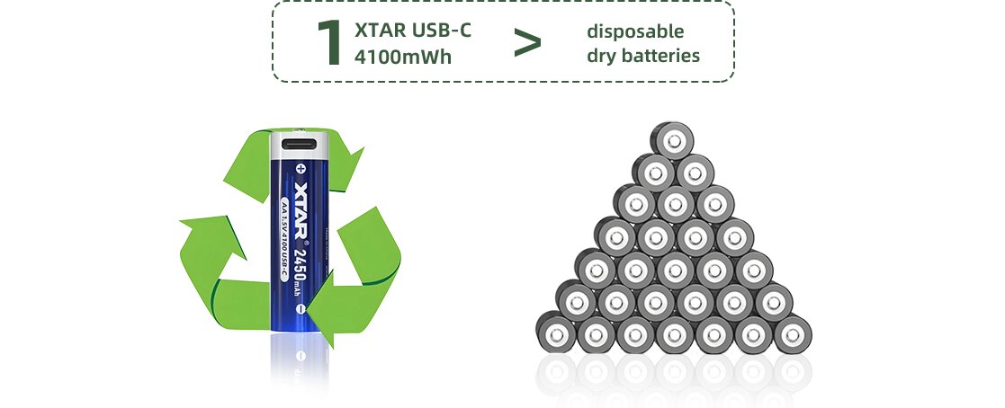Product features Xtar R6 / AA 1.5V Li-ion 2450mAh Battery with Security with USB-C Port - 4 Pieces