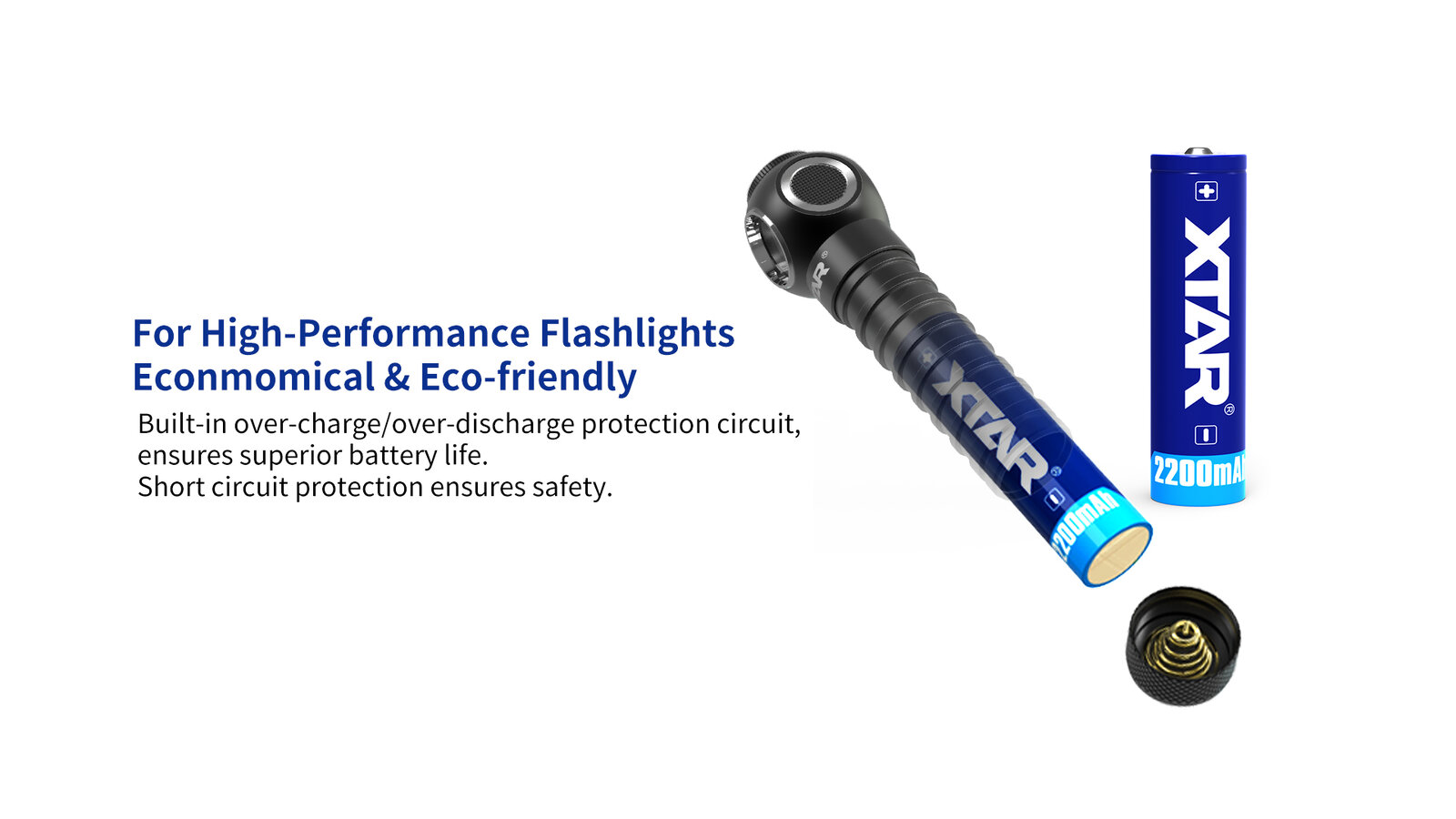 Akumulator litowo-jonowy Xtar 18650 o pojemności 2200mAh. Zabezpieczony przed przeładowaniem, nadmiernym rozładowaniem, przeciążeniem i zwarciem.